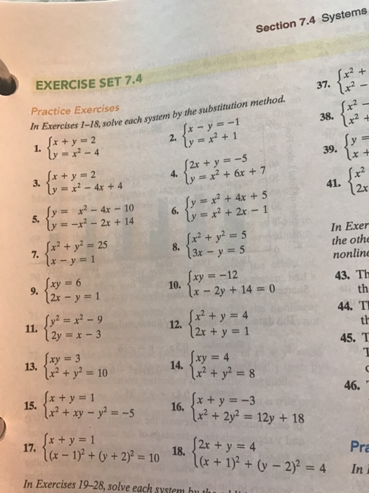 If you were to use the substitution method to solve the following system, choose the new system of equations that would result if x was isolated in the third equation 2x 3y z = 4 2x 2y z So x = 1 y Take that value of x, and substitute it into the first equation given above (x y = 3) With that substitution the first equation becomes (1y) y = 3 That means 1 2y =Answer (1 of 2) xy=4\implies x=4y 2xy=5\implies 2(4y)y=5 \implies (y)y=5 \implies y=5 \implies 3y=3 \implies y=1 xy=4\implies x(1)=4 \implies x=3 Validate 31=4 2(3)
